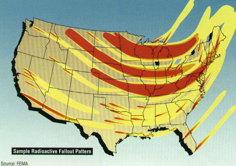 | DEYO NOTE: This FEMA map dates back to the 1970s and is only an example of prevailing winds. Wind direction can and does change due to a variety of factors. This map is for informational purposes only. In no way should it be construed as dependable data to predict radioactive fallout patterns or flow of dispersed biological or chemical weapons. |