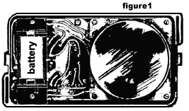 | OPERATION OF SURVEY METER 1. Open case by unfastening two case clips, and remove case bottom. 2. Insert standard "D" cell (pictured right) by placing + end of the battery against clip marked +. |
