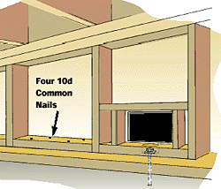 - Often the mud sill is wider than the stud wall or embedded into the concrete foundation too deeply to allow nailing along its edge. If so, you will need to add a piece of wood 2x4 or 2x6 blocking on top of the mud sill, as shown above, to provide a nailing surface. Install blocking to fit over the anchor bolts per the city's plan set, and nail it to the mud sill using four 10-penny common nails. Blunt the tips of the nails and stagger them across the wood to prevent splitting. If the blocks still split, you may have to pre-drill the nail holes. To prevent dry rot or termite damage, it is a good idea to use foundation grade redwood or a pressure-treated wood for the blocking.