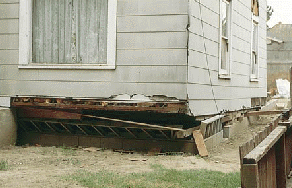 This home was jerked three feet (1 m) off its foundation during the 1989 Loma Prieta quake due to inadequate cripple wall bracing. © City of San Leandro Development Services