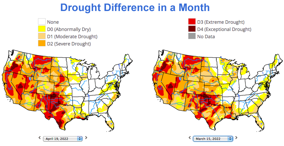 Drought impact touches every state, including Puerto Rico and the Virgin Islands to some degree except for 8. Not to get Biblical about it, but God withholds rain when he's not happy with a nation and he's got plenty to be angry about with America.