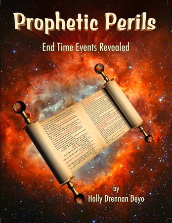 | Nearly everyone senses something is wrong; something isn't normal. They feel it. They know it. People paying attention see things are really off-kilter. Compared to just two decades ago, life is on tilt. Laid back life has switched to one of expectancy. Some wait for the Sword of Damocles to fall. Others expect a slower unraveling that brings great upheaval. Yet others anticipate Enlightenment. Some speak of the Great Cleansing. Whatever point of view, nearly everyone senses a coming "adjustment". These expected changes can be summed up as End Times events. This doesn't mean the world will no longer exist, nor does it portend man's extinction. It does signal major change. Prophetic Perils: End Time Events Revealed takes End Times Signs and matches them to the first trickles of these signposts several decades ago to current events showing where we are on the prophetic timeline. Prophetic Perils is a goosebump ride and a roadmap to unmistakable truths. Listen to Holly's interview with George Noory on Coast to Coast AM Hour 1 and Hour 2. |