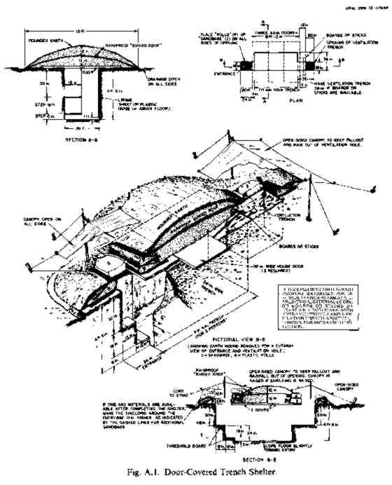 7.Check to be sure the earth is stable and firm enough so that a trench shelter with unshored (unsupported), vertical earth walls will be safe from cave-ins. (Interior doors are not strong enough to roof an earth-covered trench wider than 3 ft.)