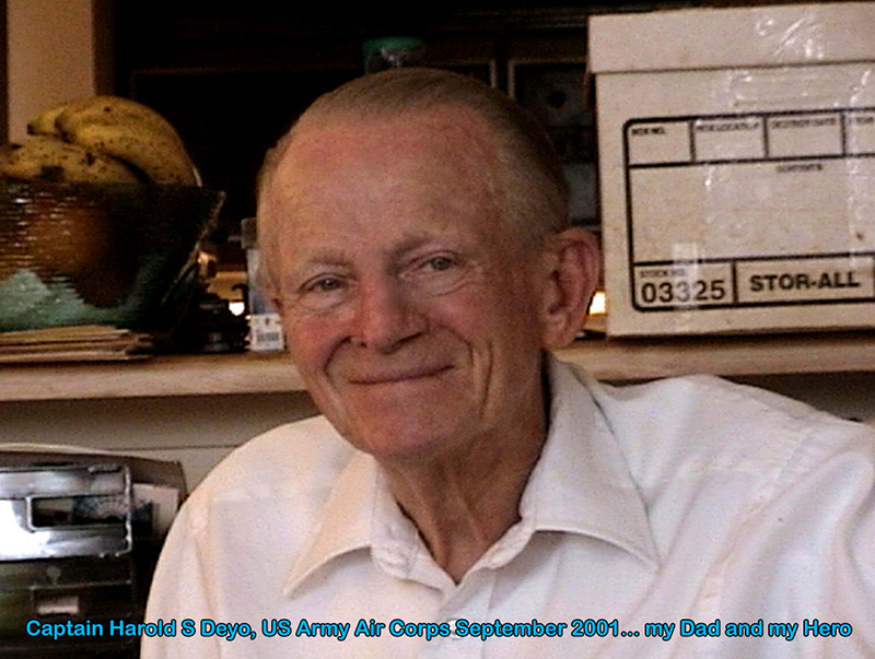 Today, on behalf of his family and friends, we would like to remember my father who, over many decades, was an unsung hero for something he and his men accomplished in 1946 after the end of the war with Germany. In 1945 President Roosevelt died suddenly. President Truman picked up the reins at that most volatile time. The war in both Europe and the Pacific had ended by mid August of that year and the task of putting the world back together again fell to the Allied nations - primarily to the USA, the UK and The Soviet Union. As one might imagine,... when the war (which had caused the deaths of over 62,000,000 people) ended those who had survived were quite anxious to get home to their families and friends. However, they first had to help cleanup the mess the war had left behind. Economies, borders and the rule of law had been damaged severely. In the midst of the post-war reconstruction in Europe and the Middle East details of the ownership of various captured assets and countries had to be settled. Since the post-war division of spoils largely depended upon what ground various Allied forces occupied at the close of the war, each of the allied countries scrambled to occupy various prized assets before the final determination of claims was made. The Soviets, who had captured Iran along with the British, wanted as much of the Middle East Oil fields as they could grab. So did the Americans and the British as they had lost almost all of their oil reserves to the war effort. This is the point where my father and his men along with the British troops who joined them pulled off one of the most clever bluffs in modern history. Toward the end of the war, American and British troops occupied the Abadan Air Base in SW Iran across from Basra in Iraq. At the end of the war, President Truman was under a lot of pressure to bring the US troops home. Negotiations with the Soviets were unstable at best. Truman knew this and did not want a new war to erupt with our former allies, the Soviets; so he ordered the majority of our troops home by the end of 1945. Now, I ask you to put yourself in the shoes of the American troops stationed at the Abadan Air Base in Iran in late 1945. They were in a foreign land where the heat rose to as high as 150°F. Many other American troops had already been returned home. They really wanted to go home ASAP. They were conscious of the Soviet Army presence around them though. So, when a courier arrived by plane from the War Department one fine day in that sandy, windswept hell they all rejoiced thinking he was bringing their orders to go home. In fact, he was but he also had another, difficult request to make of them at the same time. The courier met with my Dad, Captain Deyo, who was the senior officer of the American contingent of the air base at that time. He asked Dad to do a hard thing. He wanted Dad to convince as many of his men as he could to resign from the US Army Air Force immediately. Furthermore, he wanted them to remain behind (as civilians with no official support from the US Government) at the air base to run it so that it looked to the Soviets like America was maintaining military air presence in the region - possibly with nuclear weapons. The hope was that the Soviets could be bluffed into not making a grab for the oil fields. Dad was a great salesman and he proved it that month by getting almost all of his men to stay behind and run this covert operation. He and his men then became civilian employees of Howard Hughes who had recently purchased TWA and wanted to establish his company there at the Abadan Air Base. As some of you might recall, TWA and Hughes were both used by American Intelligence for foreign intelligence operations until the CIA could be formed (1947) and given authority to do such things. Dad and his men had to remove all American insignias of rank or service and to replace them with fake ones which, from a distance, looked like the American Army Air Force was still occupying the region. It was to be a grand bluff. They were to maintain regular flights from the base, fire their brass cannon at the appropriate times morning and evening, patrol the perimeter with guards and dogs, liaise with the local sheiks and otherwise do everything they used to do on the base when they were officially US troops. Dad and his adjutant were both superb poker players; so this whole operation really appealed to them. They were told if the Soviets captured them that the US Government would disavow any knowledge or support of their actions (you know the normal, "you're on your own, chum!" statement). Weekly, planes would fly out from somewhere with a suitcase full of US currency and instructions for the men. We have the contract that TWA signed with Dad in which they agreed to pay him US$750 per month (about $8,000 per month in modern buying power) to manage the American side of the "Abadan Operation" for them. This grand bluff went on for months until the payments promised to the men dried up. We do not know why they did but Dad and his men stayed for as long as they could afford to do so at their own expense to maintain the bluff until it was no longer needed. Finally, they all decided it was time to come home. They had accomplished their mission. So, TWA flew the men home and into the pages of history. Had these brave men not made this sacrifice,.... had they not taken the risk the world would have been a vastly different one to the one you and I share as free men and women in America and elsewhere today. Their action delayed the Russian invasion of the Middle East until now. Soon, the Russians will be forced by treaties and the need for more oil to march into the Middle East... where they will meet their Waterloo..... I ask you to join me in saluting.... and remembering a heroic and patriotic band of American airmen whose actions in 1946 were a major part in giving the American free enterprise system a chance to survive the aftermath of WWII: To Dad and those w