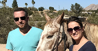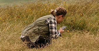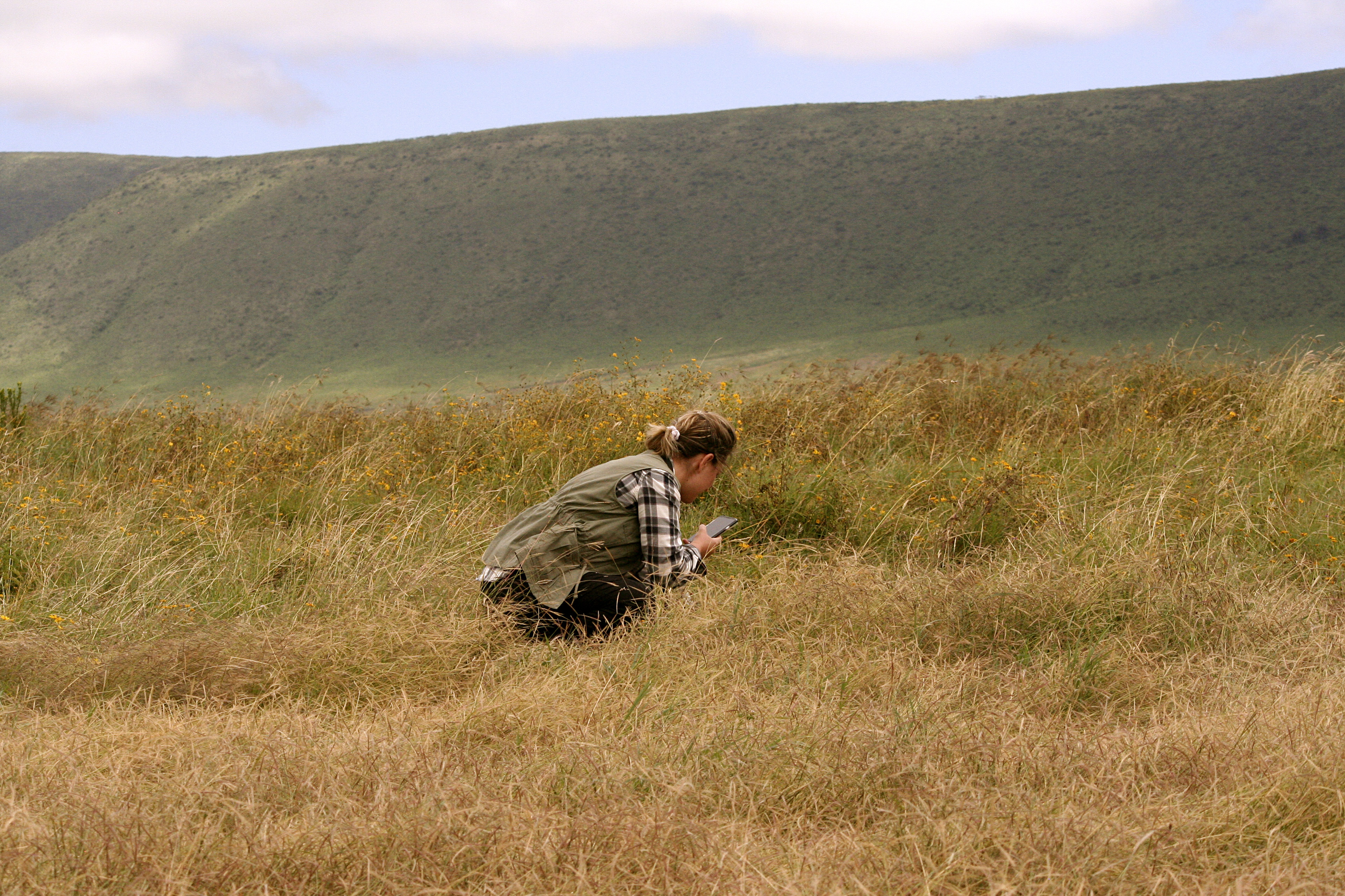 36) Kristina investigating at Engitati Hill a few feet from where the two trees of Biblical record once grew.