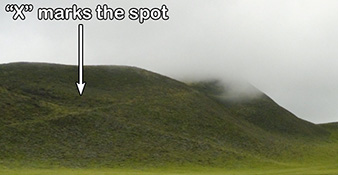 49) Engitati Hill where the fall of man happened. Fig tress growing out of the side - like a friar's haircut.