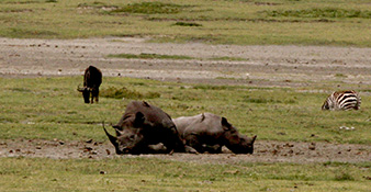 22) Rare black rhinoceros in the Ngorongoro Crater